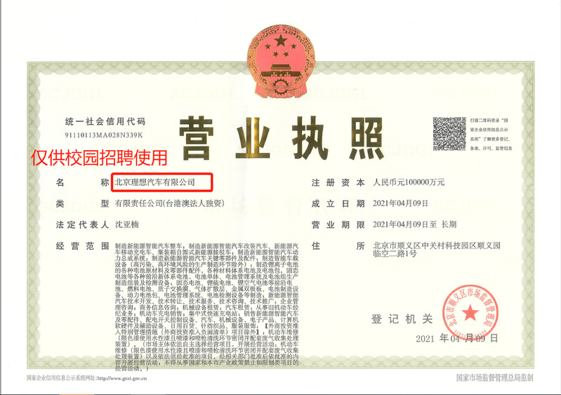 理想汽车2022春季招聘