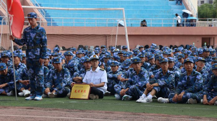 冷震与学生一起军训