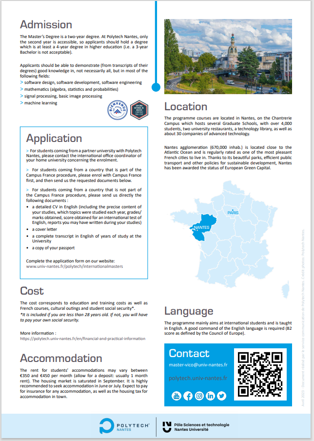 通过本项目录取的硕士研究生,学制三年。第一年在我校学习课程;第二年前往法国南特大学学习课程,在法期间第一学期主要学习理论课程(英文授课),第二学期主要在实验室实习,符合学位授予要求者将获得法国南特大学硕士学位;第三年回到我校进行论文撰写及答辩,通过论文答辩者将获得91视频 硕士研究生毕业证书,符合学位授予条件者授予学位。参加本项目的学生获得我校毕业证及学位证的要求与其他学生一致。