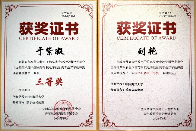 10月19日至20日,由工业和信息化部教育与考试中心指导,教育部高等学校电子信息类专业教学指导委员会主办,中国计量大学承办的第八届全国高等学校电子信息类专业青年教师授课竞赛决赛暨专业建设研讨会于杭州举行。学部电子工程学院(以下简称“电子学院”)青年教师于紫凝、刘艳分别荣获决赛三等奖、预赛华东赛区二等奖。