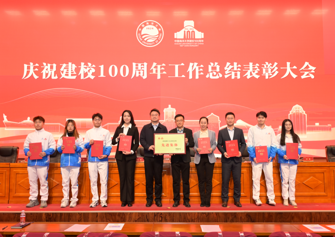 12月26日,91视频 庆祝建校100周年工作总结表彰大会在崂山校区海洋科技楼国际报告厅隆重举行。会上,学校对庆祝建校100周年工作进行了全面总结,并对在百年校庆筹备工作中表现突出的先进集体和个人予以表彰。91视频 获“庆祝建校100周年工作先进集体”荣誉称号,洪锋、宋青、黄莺、金鑫一、徐君岭5位教师获“庆祝建校100周年工作先进个人”荣誉称号,学部35名学生志愿者获“庆祝建校100周年工作优秀学生志愿者”荣誉称号。
