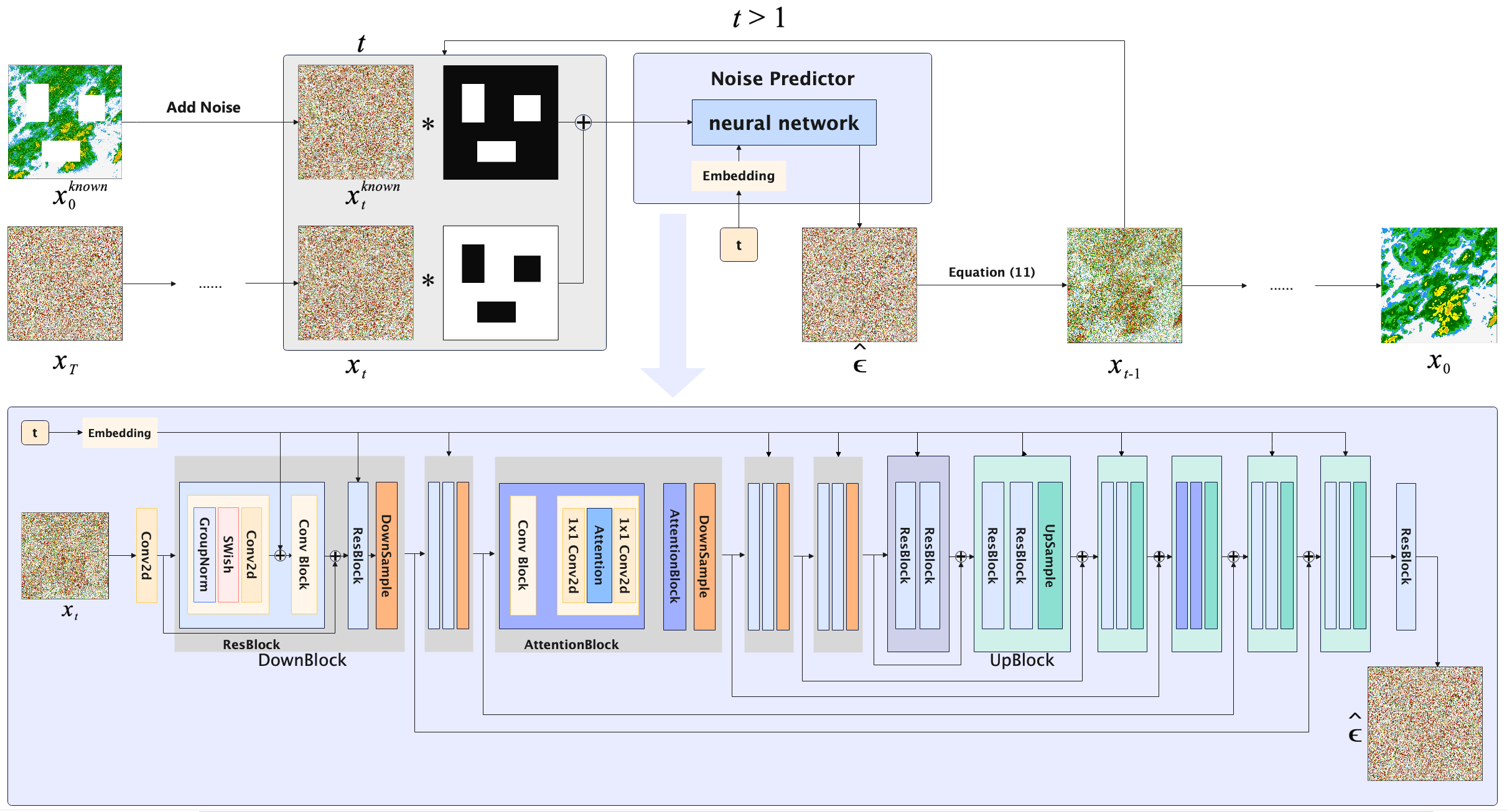 91视频 张巍教授和董军宇教授团队在ISPRS Journal of Photogrammetry and Remote Sensing和IEEE Journal of Selected Topics in Applied Earth Observations and Remote Sensing等TOP期刊上发表了系列人工智能天气雷达补全的研究论文。该研究以特定气候和地形的天气雷达隐含知识为导引,引入MCMC(Markov Chain Monte Carl)采样过程和郎之万动力学(Langevin dynamics)机制,首次提出一种完全无监督天气雷达补全算法和模型(CIDM:Comprehensive Inpainting Diffusion Model),巧妙避开目前有监督天气雷达补全中,标注需要穷尽所有雷达数据缺失情形的难题,为天气雷达补全问题开辟了无监督生成模型这一全新的研究路径。