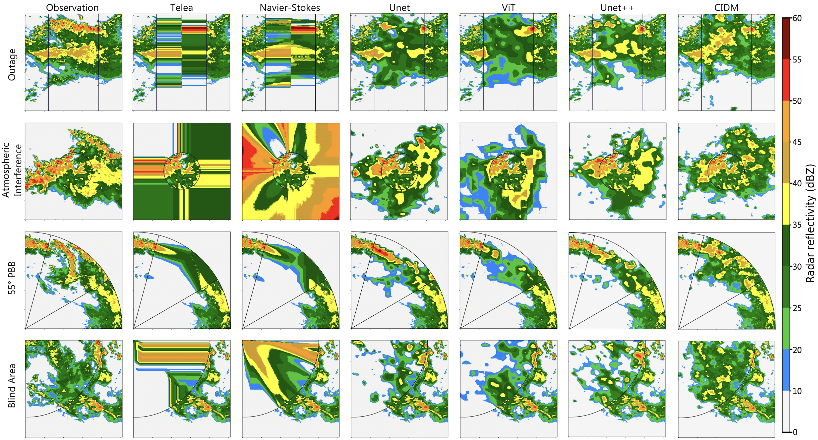 图二:极端缺失情形下CIDM和其他算法雷达补全对比