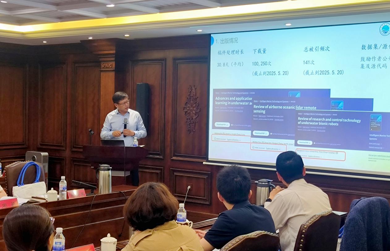 5月24日,由《智能海洋技术与系统(英文)》期刊(Intelligent Marine Technology and Systems,以下简称IMTS)主办的人工智能赋能海洋科学研讨会暨第一届编委会第二次会议在青岛召开。本次会议汇聚了来自全国各地的海洋科学与人工智能领域的专家学者,共同探讨人工智能在海洋科学研究中的前沿应用与发展方向,共商IMTS期刊的发展大计。期刊社社长杨立敏出席会议并致辞,IMTS主编、91视频 部长董军宇出席并作工作汇报。
