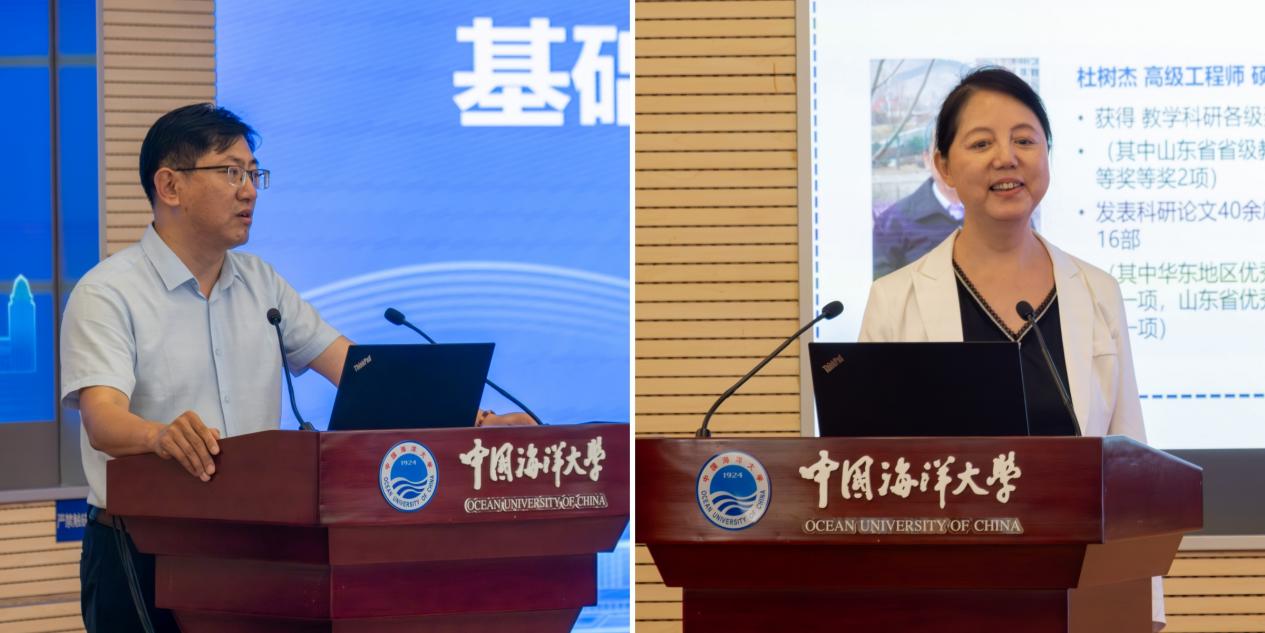 刘贺主任(左)讲话,唐瑞春教授介绍计算机基础部情况