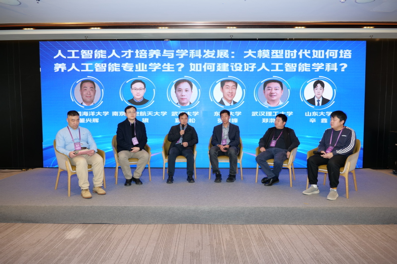 围绕“人工智能人才培养与学科发展:大模型时代如何培养人工智能专业学生?如何建设好人工智能学科?”这一议题,夏桂松、张岩峰、郑渤龙、朱旗、辛鑫、董兴辉等高校专家学者,结合各自学校在人工智能领域的办学实践、学科布局与人才培养探索等方面展开深入交流。各位专家聚焦大模型带来的教育变革,围绕课程升级、产教融合、实践培养、跨学科协同、师资建设等关键方向,分享了办学经验与前沿思考。