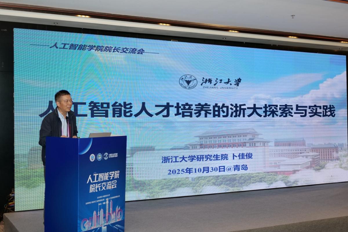 报告环节,卜佳俊以“人工智能人才培养的浙大探索与实践进行”为题作主题报告,分享了浙江大学立足AI产业发展需求,通过优化课程体系、搭建实践平台等方式,强化学生基础能力与创新应用素养的探索与实践。卜佳俊表示,未来将持续聚焦行业发展趋势,完善培养机制,为国家和社会输送更多人工智能领域复合型人才。