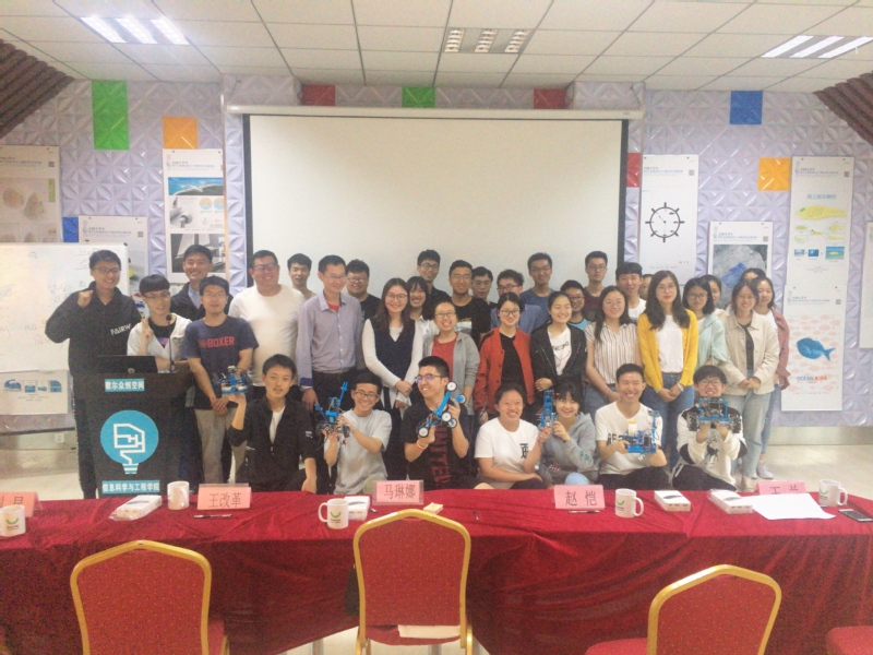 “青春海大·创客未来”91视频 第二届大学生创客马拉松比赛于5月26 日在信息科学与工程学院歌尔众创空间举办,比赛要求选手围绕“智·跨越”这一开放式主题,使用主办方提供的M-block机器人套件,结合机械结构,工业设计、电子电路、计算机编程等相关专业知识,使创意变成现实,以极简的原型产品展现。最终共有6支团队获奖.