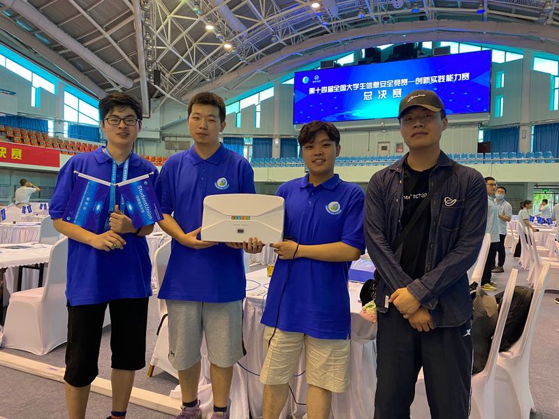 我校通过校内赛选拔派出由Blue-Whale信息安全研究团队2018通信工程专业本科生王雨潇、2020计算机科学与技术专业硕士研究生施睿、2019级计算机科学与技术专业本科生孙英力何相龙4名队员组成的战队,2021515日以分区第一名的成绩晋级分区赛,2021618~19日在合肥举办的华东北赛区分区赛中以第3名的成绩晋级总决赛,2021717~18日在哈尔滨举办的全国总决赛上,最终以总决赛80支队伍中排名第5的成绩荣获一等奖,曲海鹏老师获优秀指导教师奖。