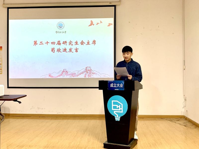 第二十四届研究生会主席苟欣迪发言并介绍了研究生会接下来一年的工作计划和努力方向,秘书长田响涛带领全体研究生会成员进行宣誓,表达了为同学们服务的坚定决心。
