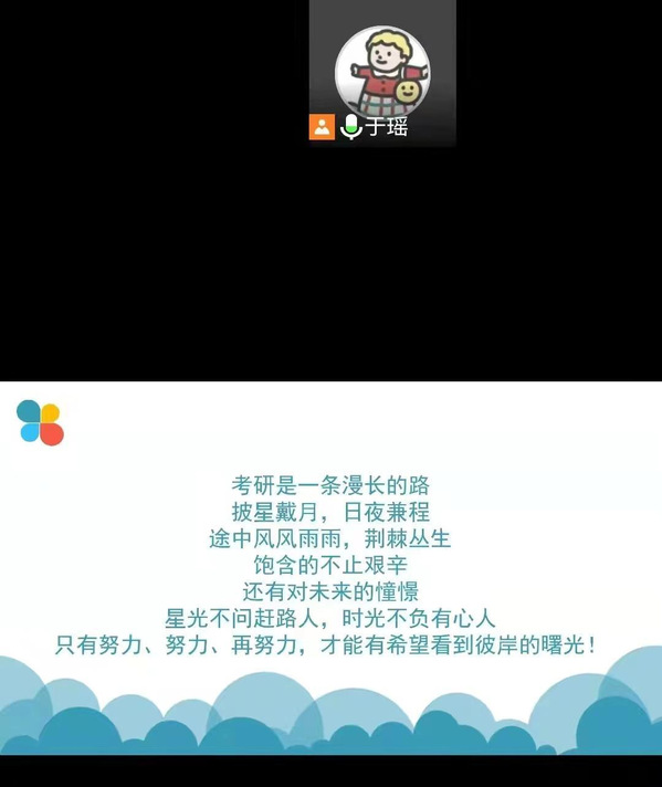 2018级本科毕业生面临着考研复试、就业等毕业压力,2018级辅导员赵凤娇就近几年的全国研究生报名人数和增长率,以及部分高校的报录比等数据同家长进行分享,指出当前研究生复试准备的重要性和紧迫性,希望家长及时督促学生全力备考。提醒学生多多关注招聘信息,查找、反思面试过程中的问题,及时优化、完善个人简历,引导学生积极求职。同时,也要关注到学生的心理情况,缓解学生心理压力,及时与辅导员进行沟通。