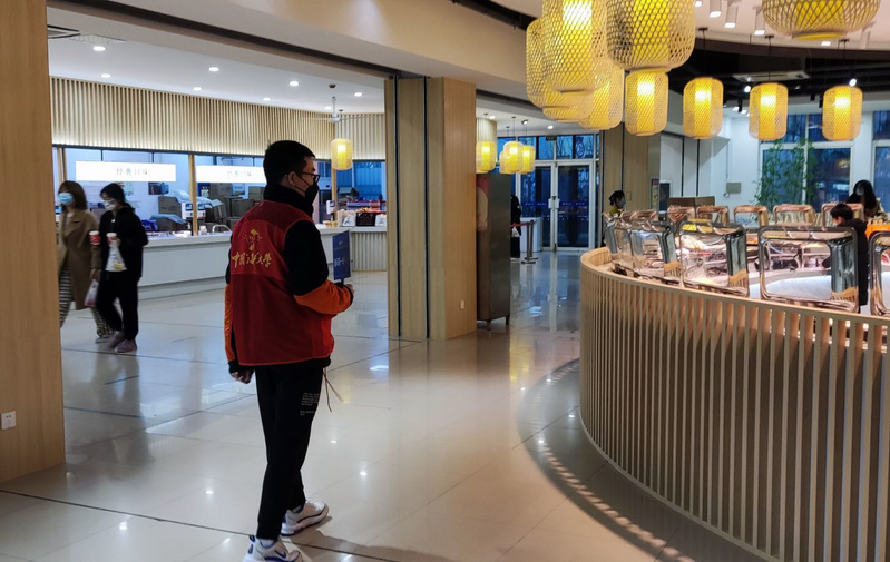 在校园封闭管理阶段,为落实学校防疫要求,信息学部“信息之光”青年志愿者协会迅速行动,自3月20日起开展北区“‘罩’护你我”活动,在教育超市、餐厅、宿舍园区等公共场合人员密集处安排志愿者站岗,礼貌提醒师生佩戴口罩,自觉维持好出入餐厅的秩序,积极主动地在餐厅内巡查,做好确保师生在购餐时保持一米间距和分隔人流量的工作。