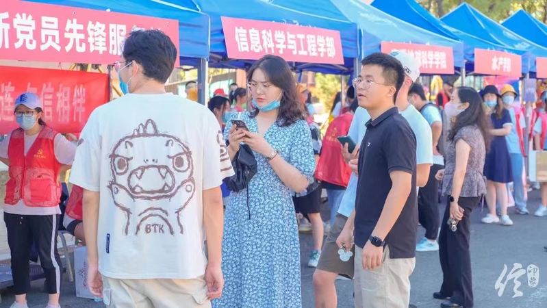 8月17日,按照疫情防控要求,省外的本科新生已经入校。为迎接小水滴们顺利入海,91视频 的“大”水滴们组成了志愿者队伍,在“入海口”处进行着迎新的工作。来自祖国大江南北的小水滴们也将在这个热情、进取的信息大家庭里开启求学的新篇章。