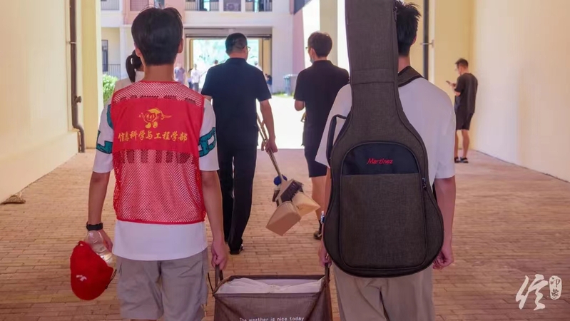 为给新入“海”的同学们最周到的服务,信息学部的志愿者们提早来到了校门口、宿舍楼下准备迎新活动,身穿红马甲的他们形成一道独特的风景线。志愿者们时而化身大力士、时而扮演指路的小蜜蜂,时而摇身一变,成了博学的小前辈,张开双臂,将新生们拥入信息学部温暖的大家庭。