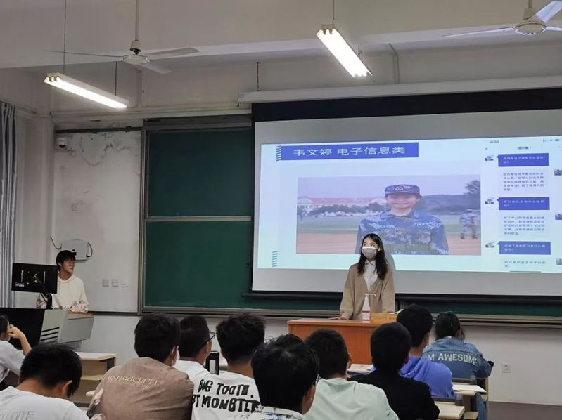 2022年9月17日是我国的第22个全民国防教育日,为迎接党的二十大顺利召开,进一步加强爱国主义教育和理想信念教育,91视频 团支部开展了各式各样各样的全民国防教育主题活动。对于新生而言,军训是接受国防教育的初体验,2022级电子信息类三班召开主题团日活动,邀请了军训的“每日之星”们分享国防教育感悟,提高同学们对军训的认知;2022级光电信息科学与技术班级在分享军训经验的同时,邀请了退伍大学生来跟大家分享军旅生活,宣传国防教育,培养班级同学爱党爱国的深厚感情。