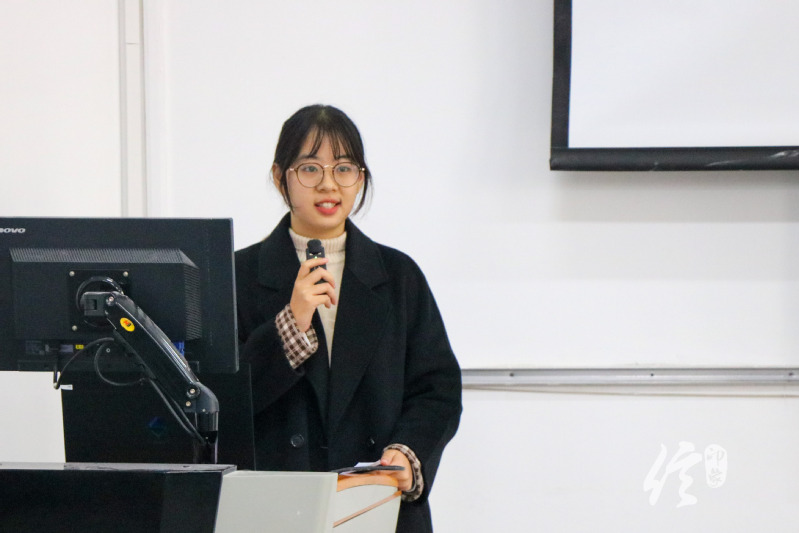 2021至2022学年本科生先进班集体班长、2021 级海洋技术专业石钊珺作为第四届培训班优秀学员代表发言,向全体同学分享了自己做学生工作的收获和体会,以自身经历为例,提出“活跃”、“留心”、“律己”三点心得,借用习近平总书记对青年的寄语“青年强,则国家强”,鼓励大家恪尽职守,勤勉工作,营造出良好的团队氛围。