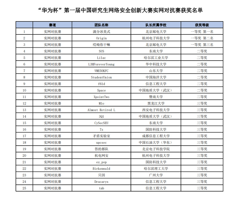 “华为杯”第一届中国研究生网络安全创新大赛是“中国研究生创新实践系列大赛〞主题赛事之一,以国家战略需求为驱动,紧紧围绕研究生的培养目标,从“产教融合”、“科教融合”、“赛教融合”等维度设立揭榜挑战赛、创意作品赛和实网对抗赛三个赛道,重点锻炼研究生的科学创新能力和工程实践能力,力求解决国家在网络空间安全领域的“卡脖子”问题,为国家培养、选拔和储备一批急需的高层次网络安全人才。