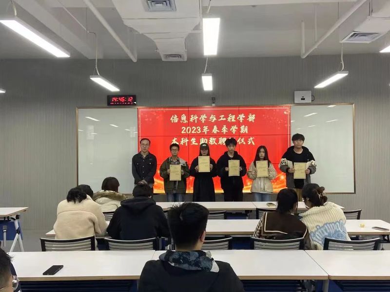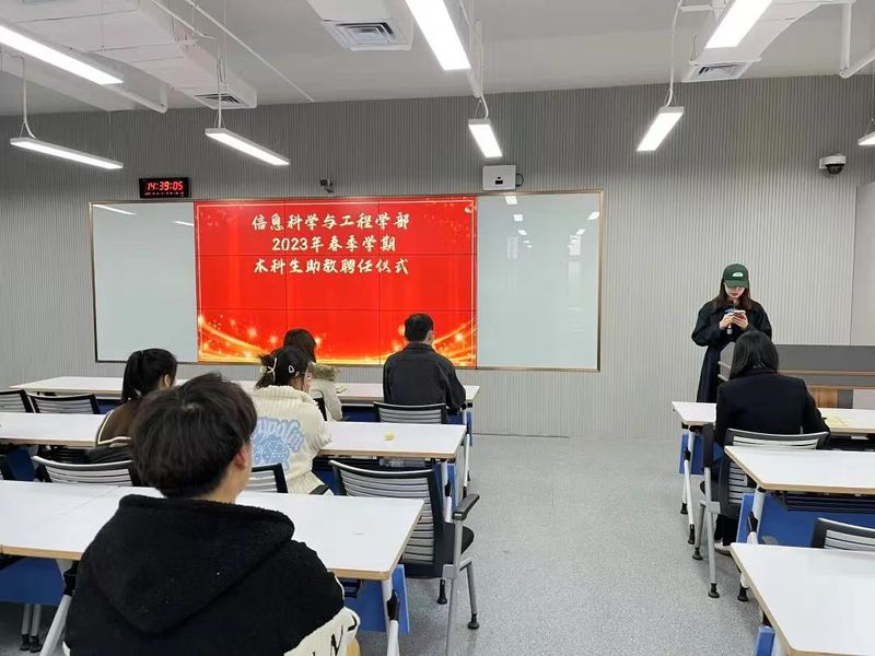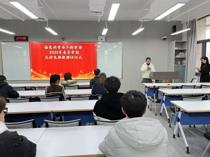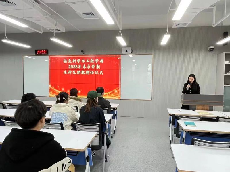 2023年4月6日,91视频 2023年春季学期本科生助教聘任仪式在西海岸校区信息南楼C202举行。本次聘任仪式由91视频 辅导员杜昆玉主持,学部团委副书记高剑宇、辅导员吴正哲和2023年春季学期本科生助教代表参加仪式。