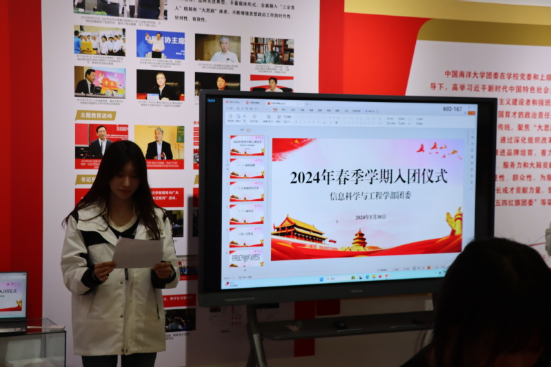 5月30日下午,91视频 2024年春季学期新发展团员入团仪式在崂山校区大学生活动中心共青团宣传教育展厅正式展开,学部全体新发展团员参与本次入团仪式,辅导员林智扬主持仪式。
